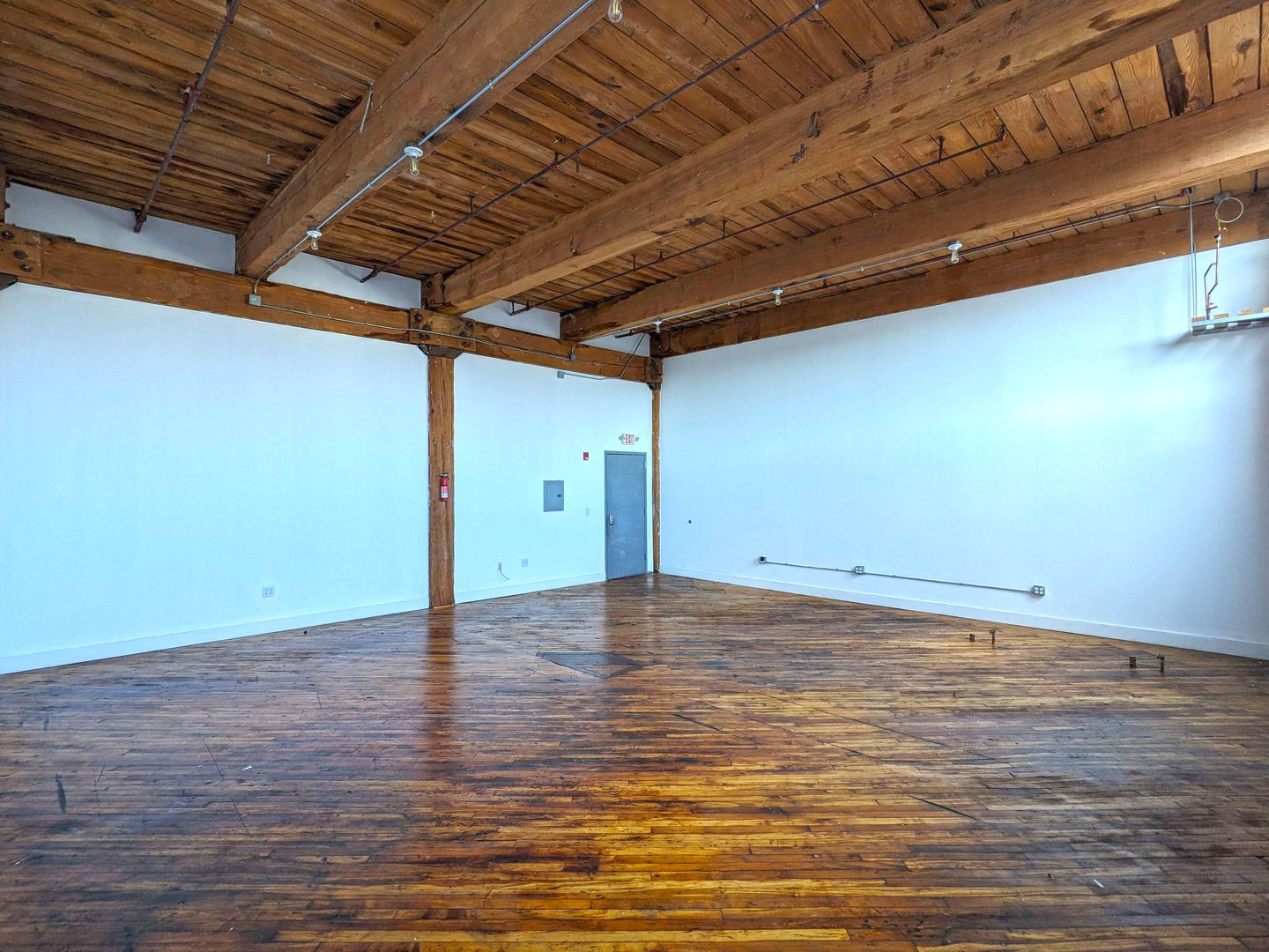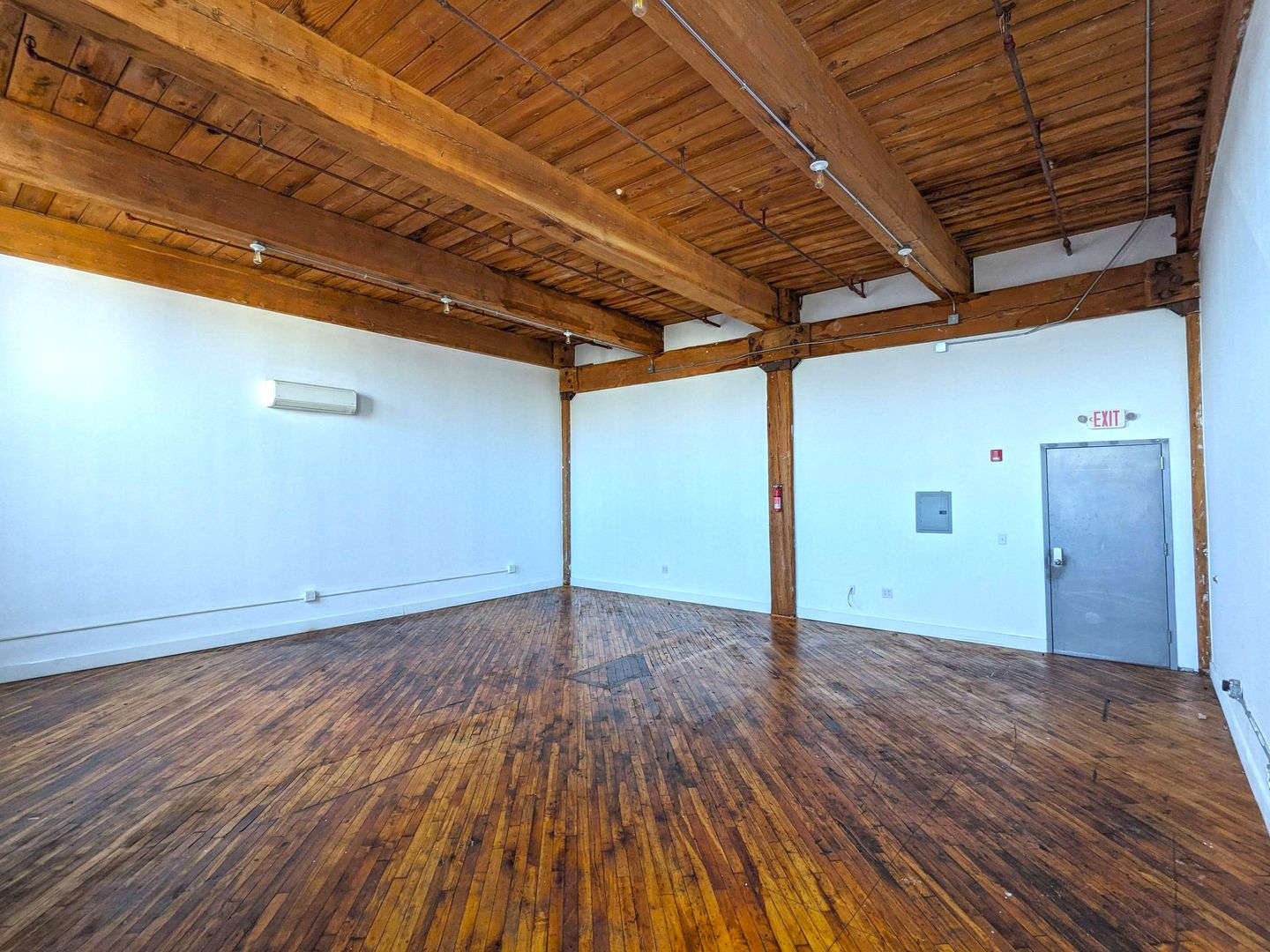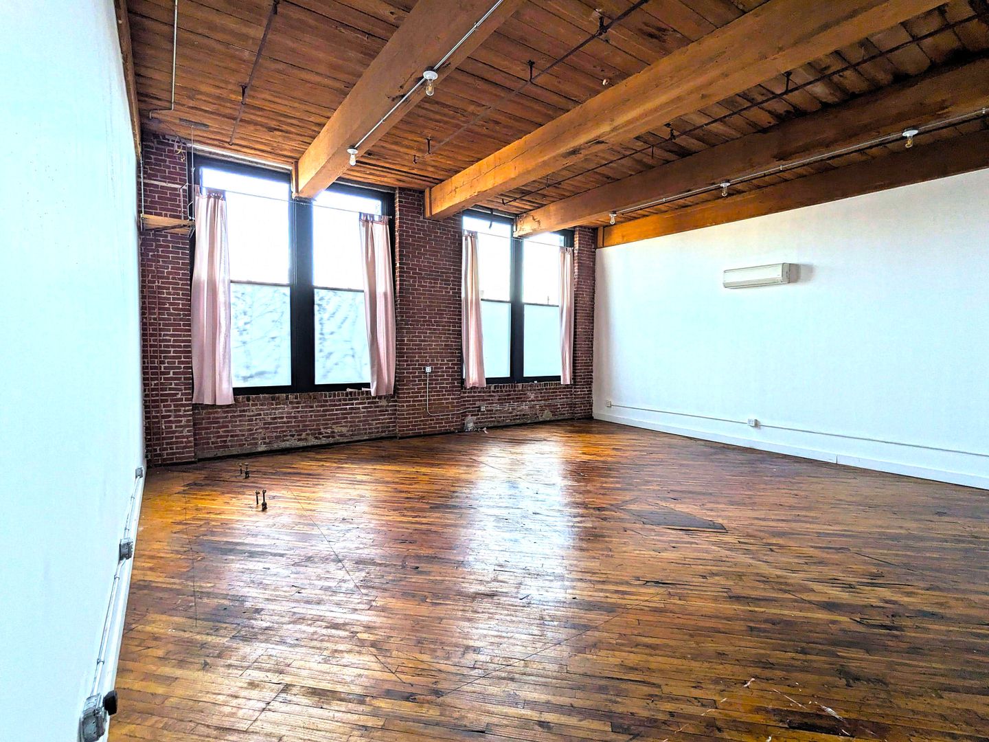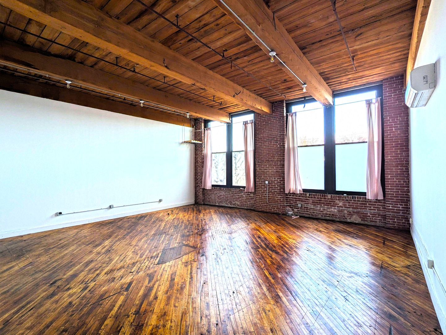 Discover the perfect workspace with this beautiful studio, designed for office use. Located in the heart of Jasper Studios, this unit is filled with natural light, has stunning hardwood floors, and is equipped with AC and electric heating for year-round comfort. This unit has two available hook ups for wash sinks, hook up for a water heater, and additional 4-gang electrical outlets.